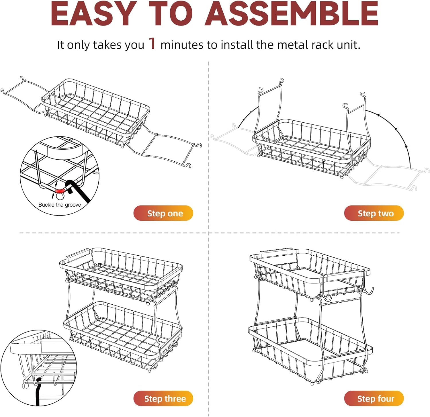 • [Easy to Assemble] The fruit basket sets up in just 30 seconds without any tools and comes with detailed instructions. Its stackable design helps you make the most of your kitchen counter space.